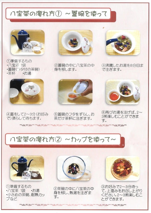 上記それぞれをイメージして独自ブレンドされた八宝茶になります。