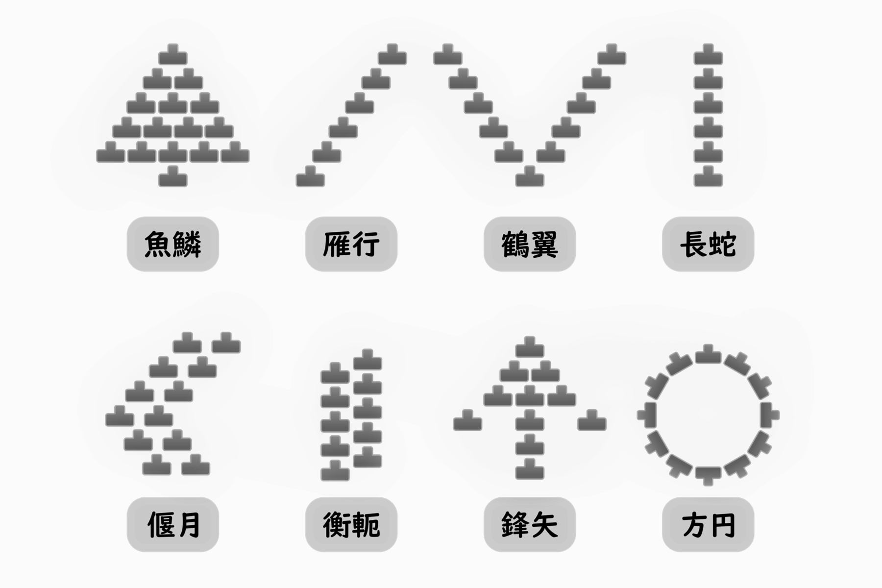 これらの八陣は諸葛亮の八陣に由来するものです。