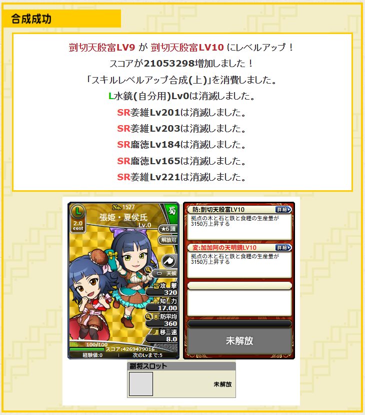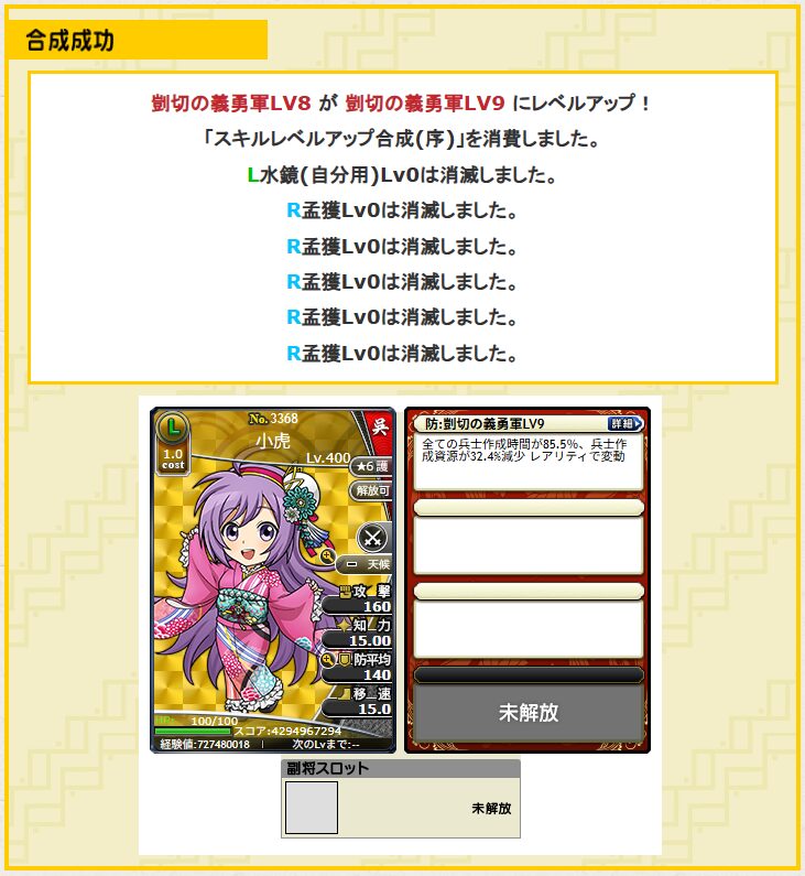 オール10+副将解放にしてしまおうと考えましたが、型落ちスキルという事もあり、