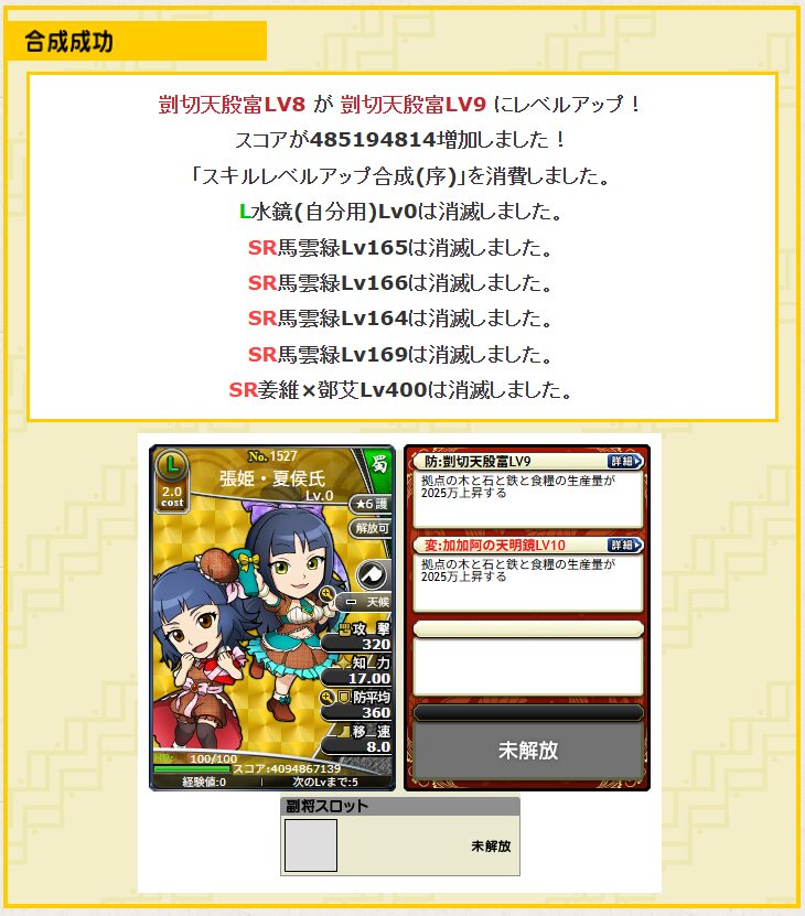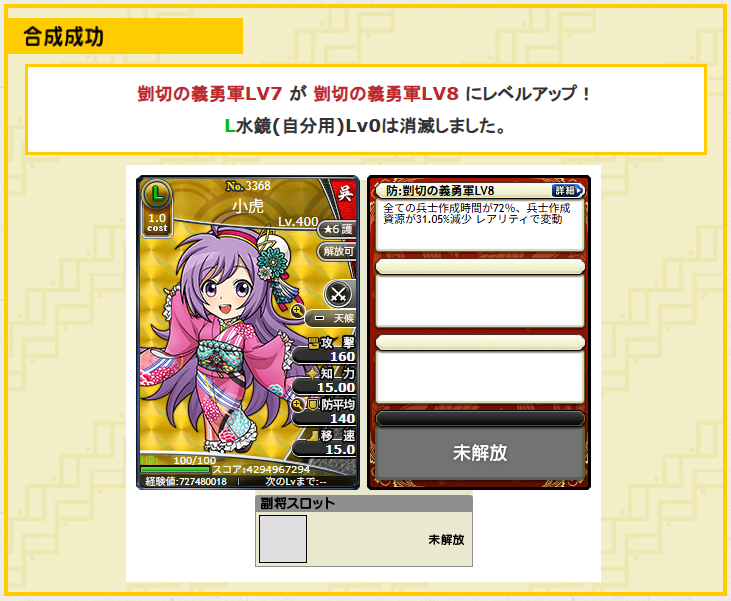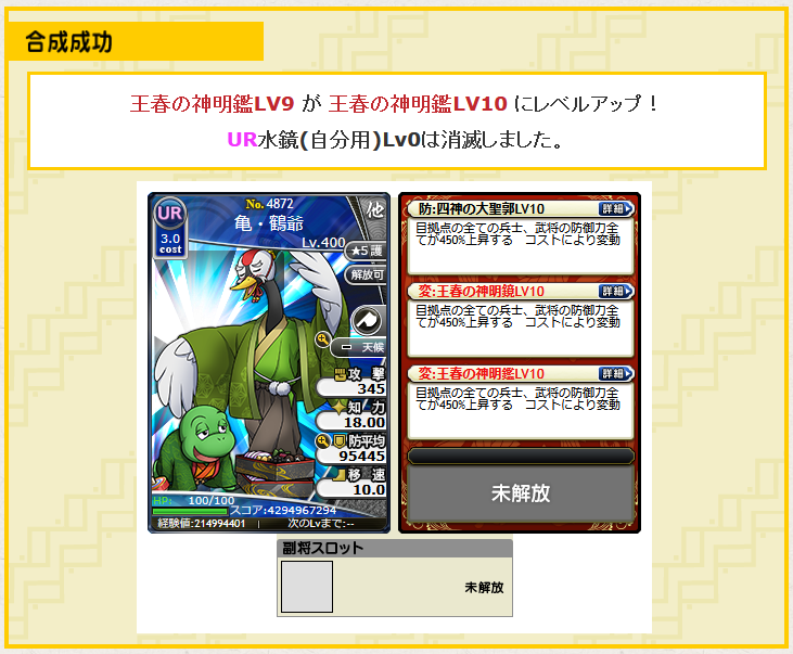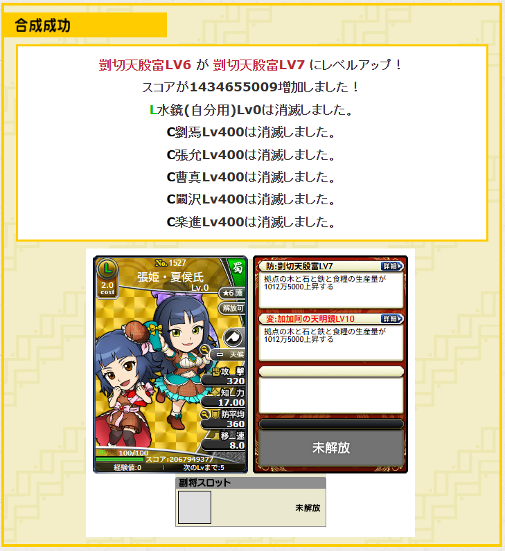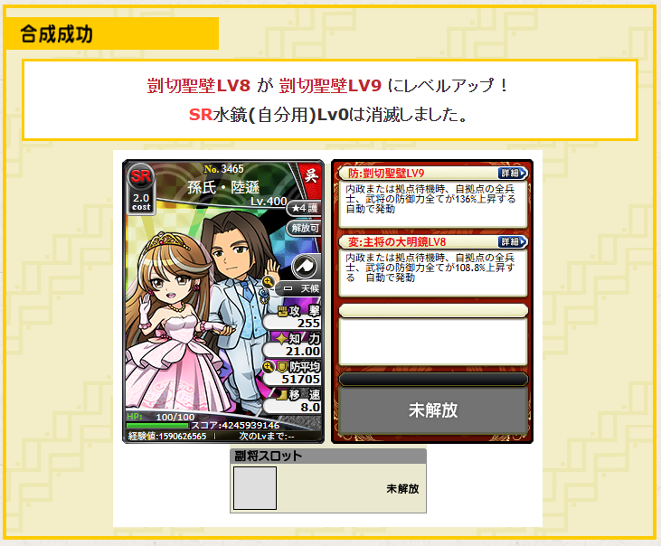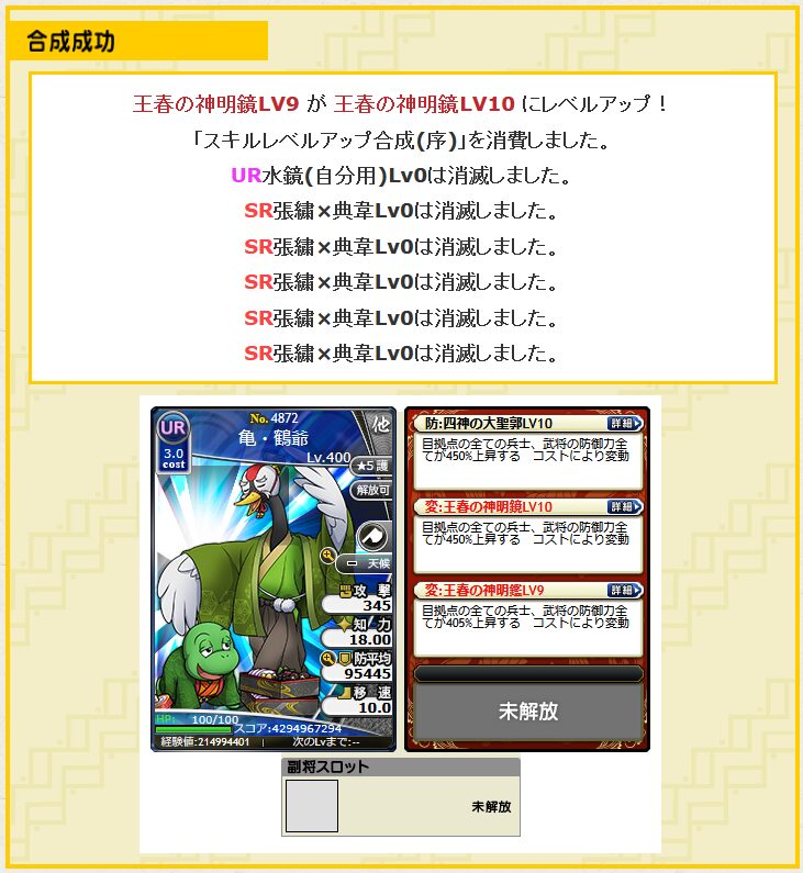 タグ : 主将の大明鏡, 張姫・夏侯氏, 霊帝・何皇后, 関興・獅子舞, 主将の帝明鏡, 剴切聖焔, 加護大聖壁, 春節の天明鏡, 関平, 亀・鶴爺, 孫氏・陸遜, 小喬, 剴切の義勇軍, 剴切聖壁, ブラウザ三国志, 呂布・高順・張遼, 四神の大聖郭, 合成, 神威, 四神, 剴切大聖陣, 桜花の神明鏡, 大聖郭, 桜花の神明鑑, 王春の天明鑑, 副将解放, 剴切天殷富