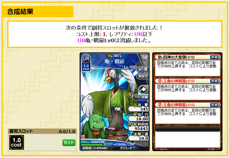 UR亀・鶴爺(王春の神明鏡Lv10&王春の神明鑑Lv10)