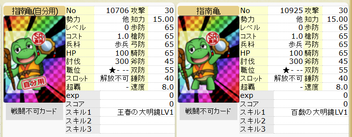 ここでどちらかの指南亀(王春・百戯)を付与して、