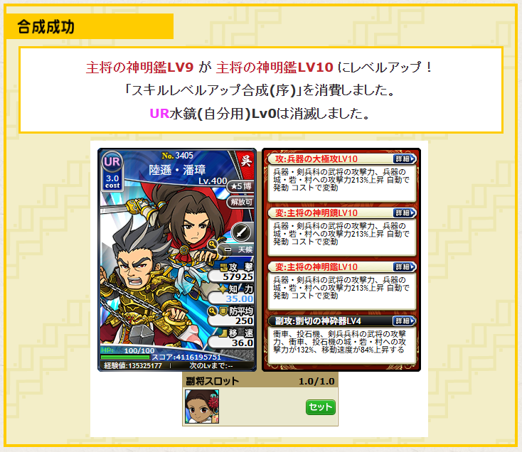 UR陸遜・潘璋(主将の神明鑑Lv10)