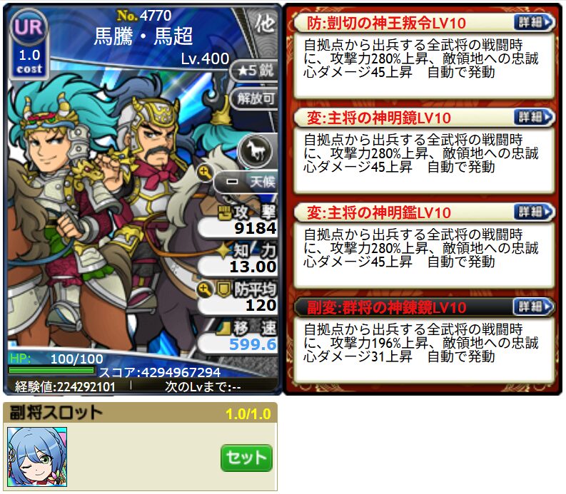 UR馬騰・馬超に主将の神明鑑を付与