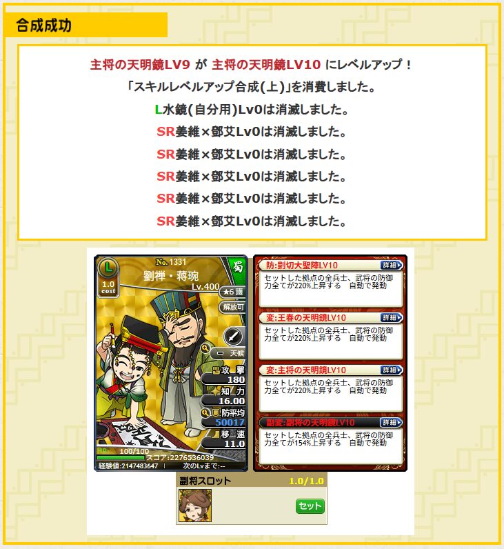 L劉禅・蒋琬(主将の天明鏡Lv10)