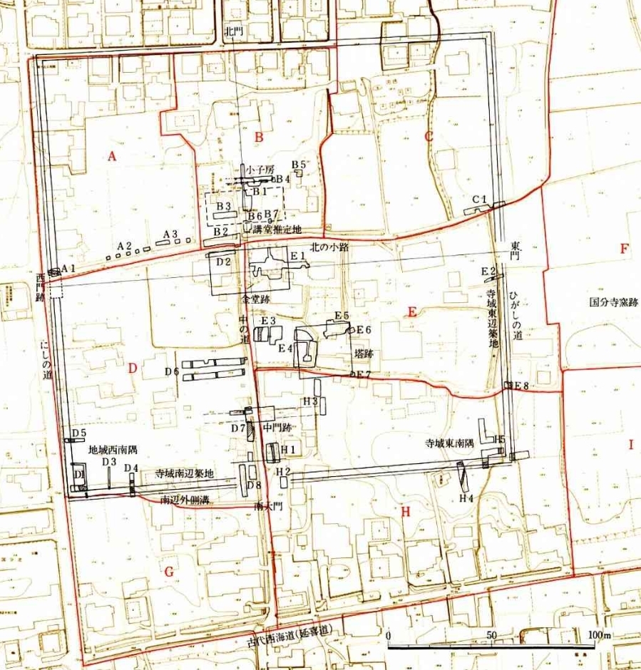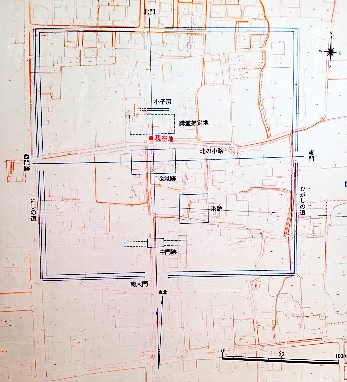 またここに建てられていた塔の基壇は、南北24.9メートル、東西25.4メートルという大規模なものであり、